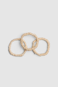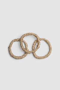 Tied with a bow, our set of three 100% Mulberry silk scrunchies are perfect for use at day or night.